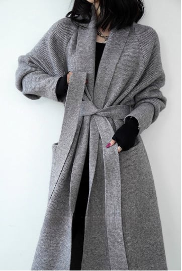 高見えニットカーディガンコート レディース 秋冬 ミドル丈 ゆったりシルエット ベルト付きルーズアウター