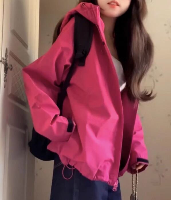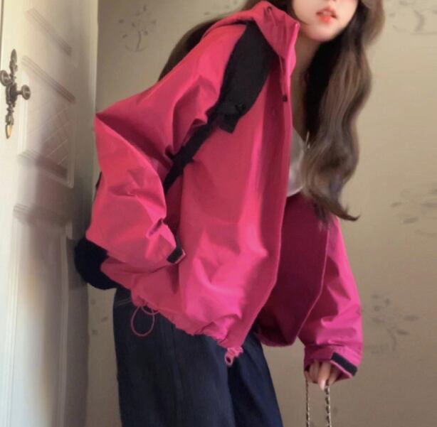 レディース ローズレッド ウィンドブレーカージャケット